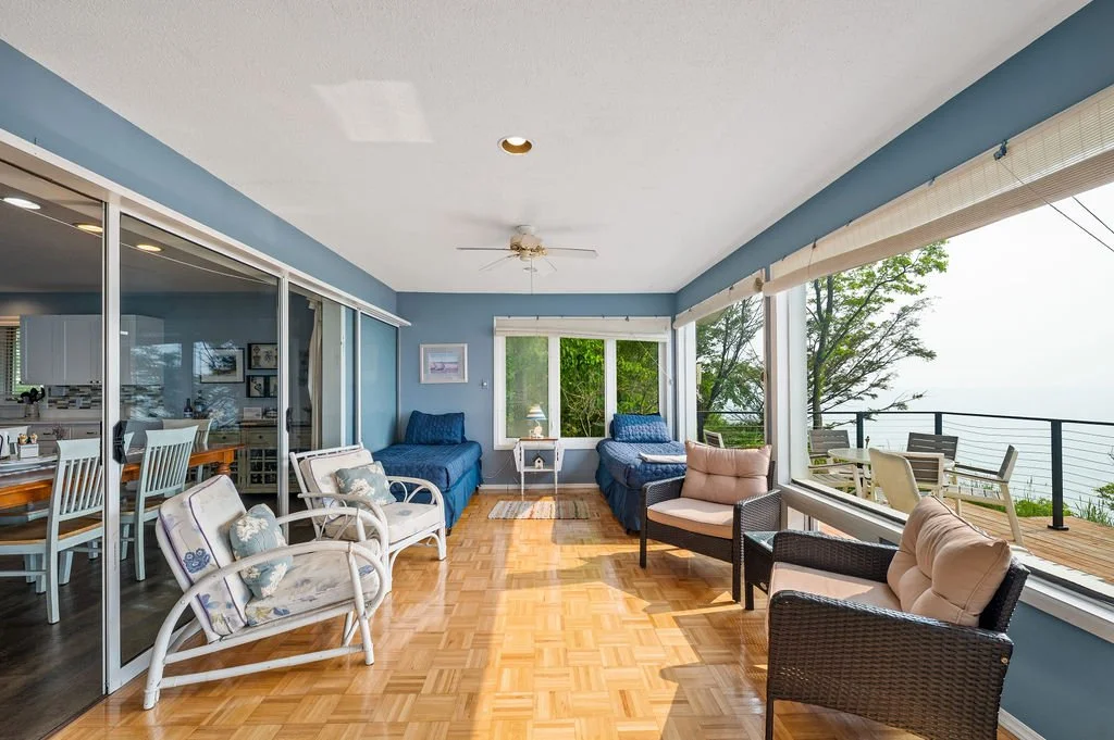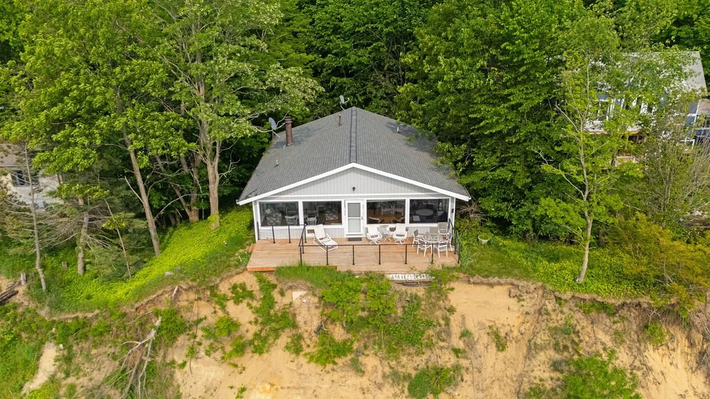 Enjoy your own private deck with full view of Lake Michigan, perfect for enjoying your morning coffee and relaxing with friends and family during the evening. Lake erosion has taken much of the land from this home. Eventually it will need to be moved or rebuilt. Mother Nature will determine how many more years it can be safely enjoyed.