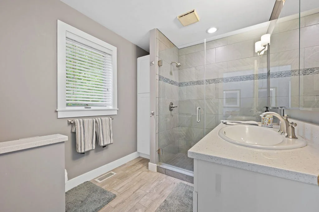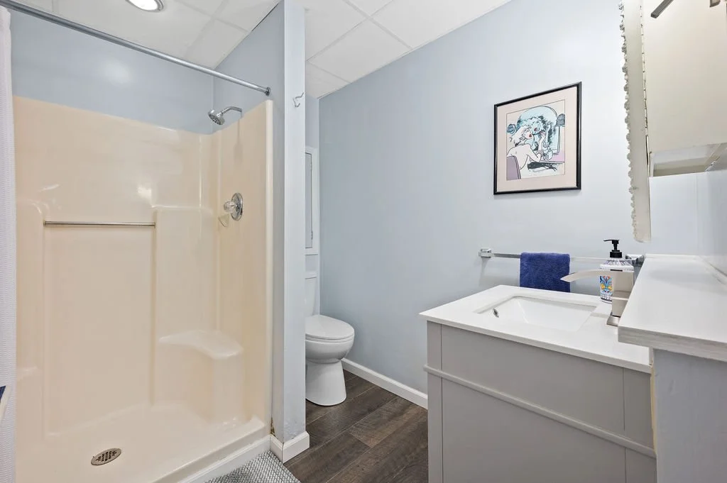 Two bedrooms are furnished with comfortable king beds, clean linens and a closet and dresser to hang and store your belongings. Bedroom 3 has bunkbeds and a double bed. Our bathrooms come with clean towels and basic toiletries: shampoo, body wash, and a hair dryer. It has everything you need to refresh from a long day out and about in South Haven.